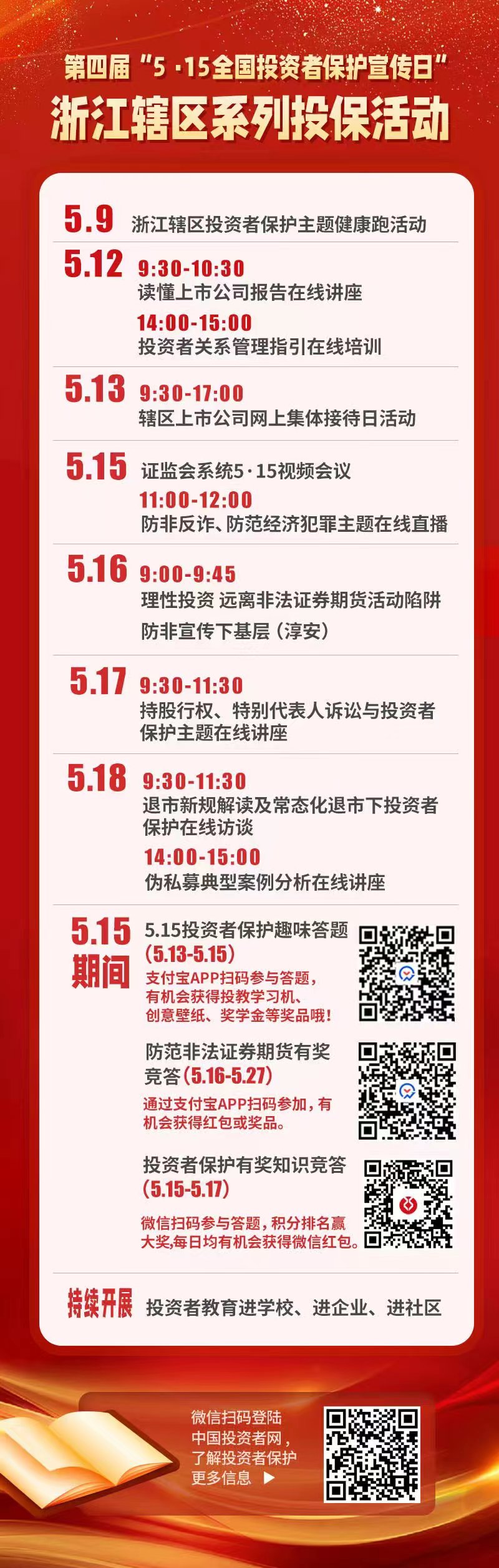第四届“5·15全国投资者保护宣传日”浙江辖区系列投保活动来啦